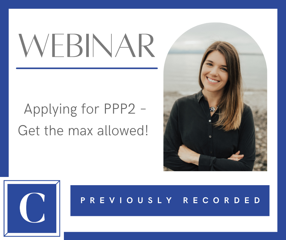Hannah Smolinski, CPA and founder of the Clara CFO Group will be sharing what you need to know to maximize your PPP loan amount. She will also be sharing the most important things you need to know about applying for and using PPP2.