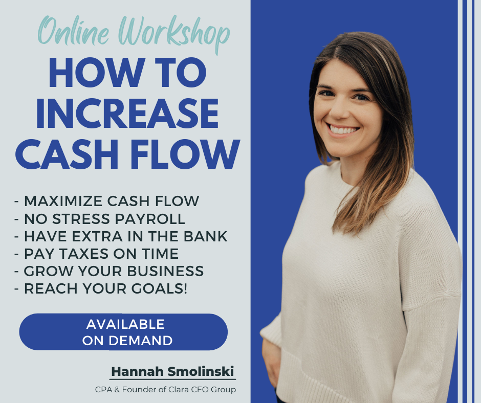This Cash Flow workshop was created and delivered by Hannah Smolinski, CPA. Please watch the recording, download a copy of the spreadsheet and slides, and make sure to give us your feedback on the workshop.